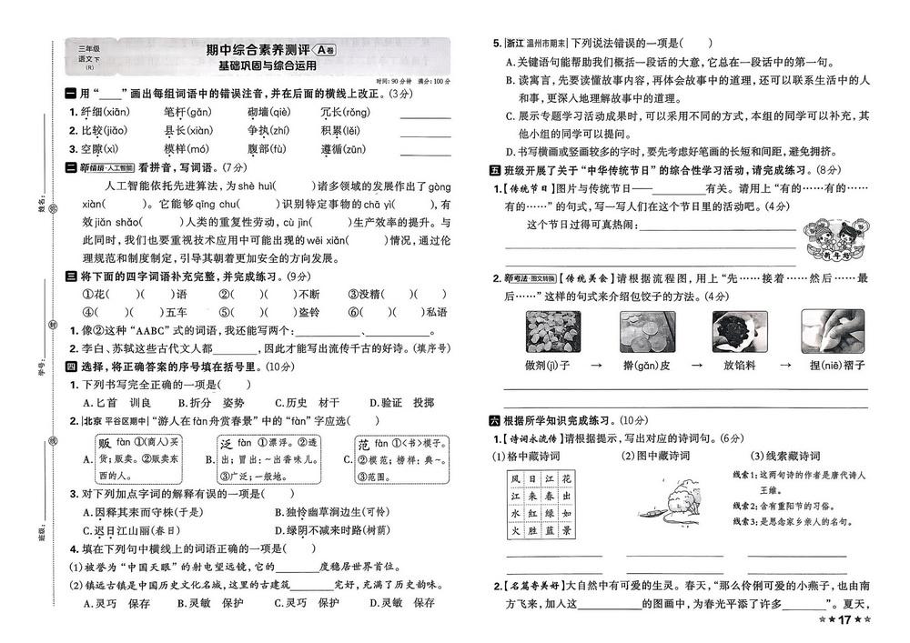 打印试卷方法:①图片右键保存本地(1500像素)。