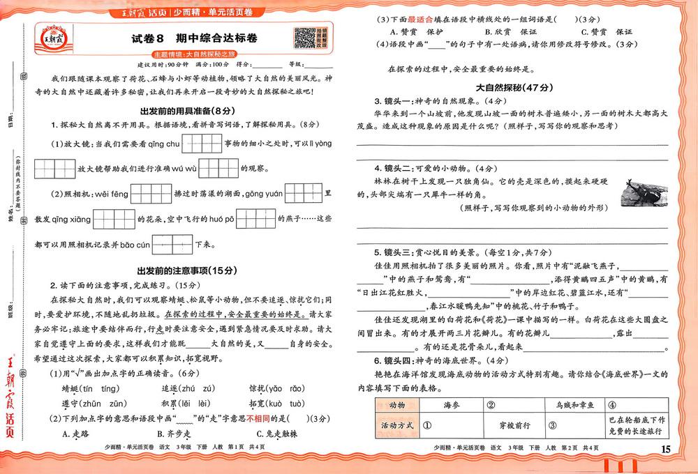 新教材人教版三年级下册语文期中测试卷十一