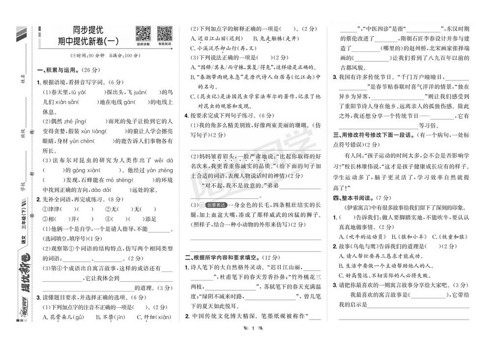 打印试卷方法:①图片右键保存本地(1500像素)。