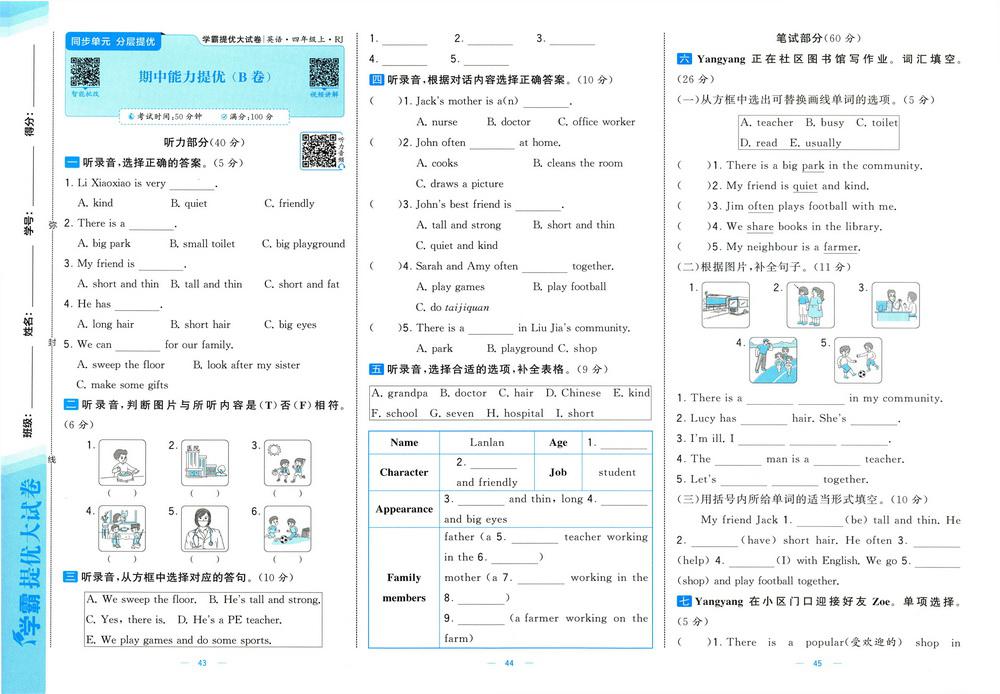 新教材人教PEP版四年级上册英语期中测试卷十一