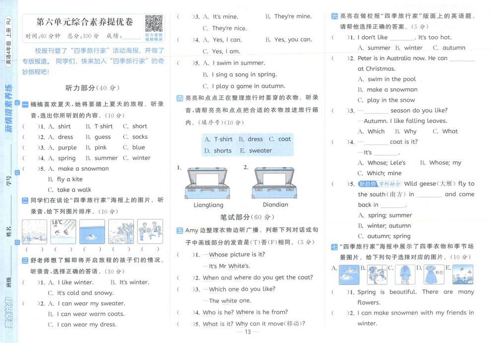 新教材人教PEP版四年级上册英语unit6测试卷十八