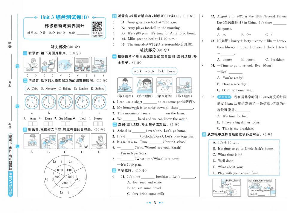 新教材人教PEP版四年级下册英语Unit3测试卷二十