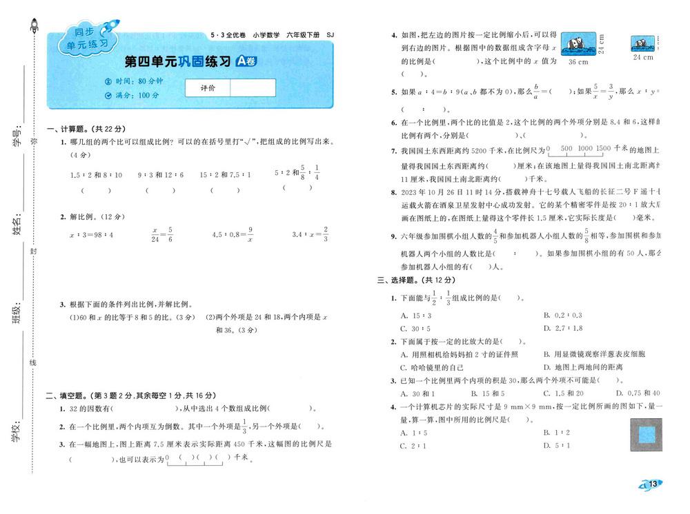 苏教版六年级下册数学第四单元测试卷十三