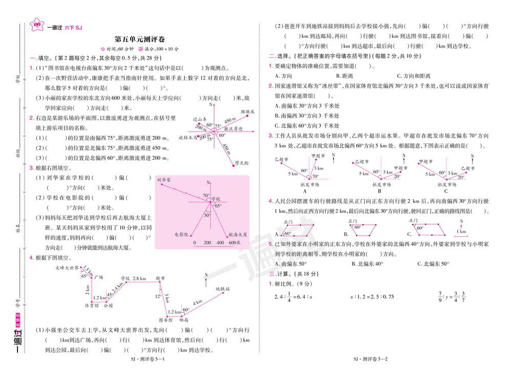 苏教版六年级下册数学第五、六单元测试卷一