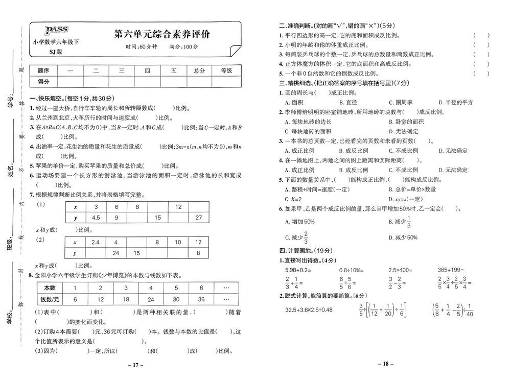 苏教版六年级下册数学第六单元测试卷十八