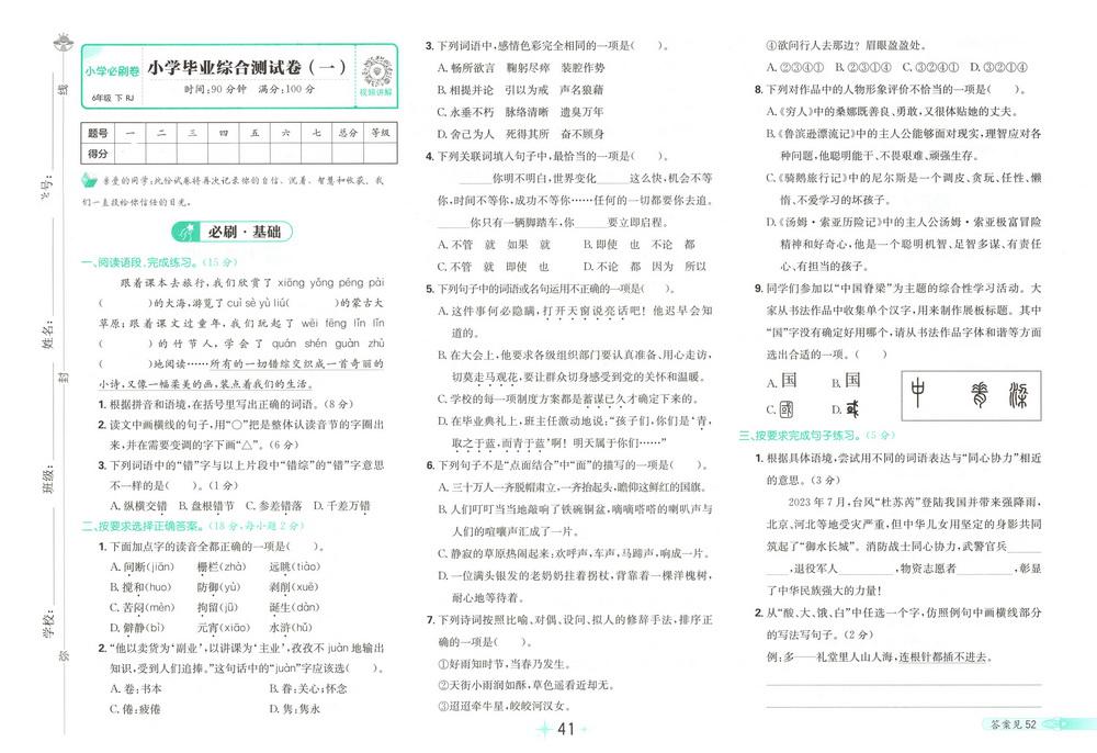 小学语文小升初毕业综合测试卷(一)(小学必刷卷)video