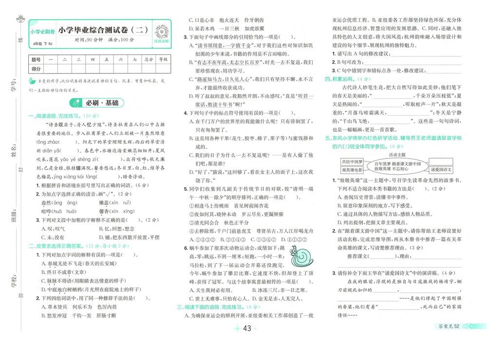 小学语文小升初毕业综合测试卷(二)(小学必刷卷)video