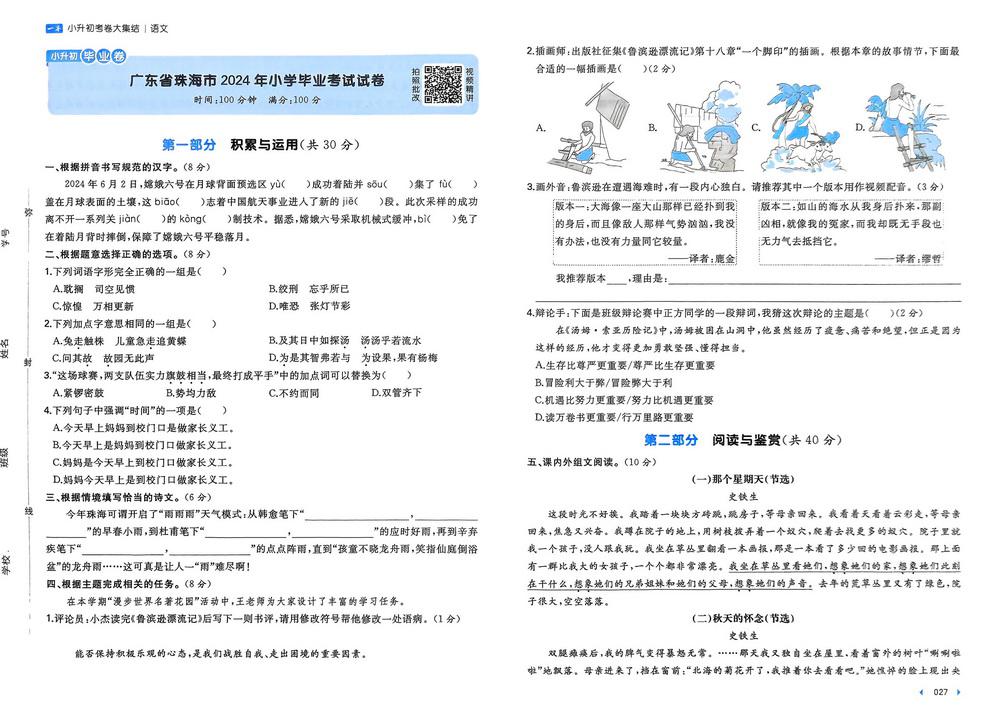 广东省珠海市 2024 年小学毕业考试语文试卷video