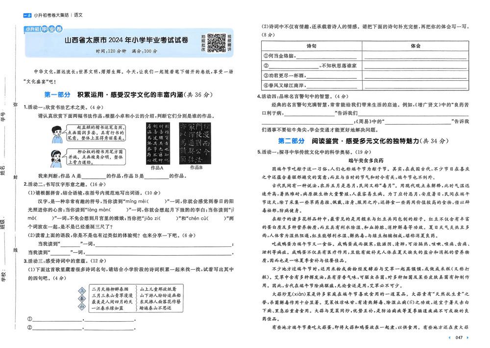 山西省太原市 2024 年小学毕业考试语文试卷video