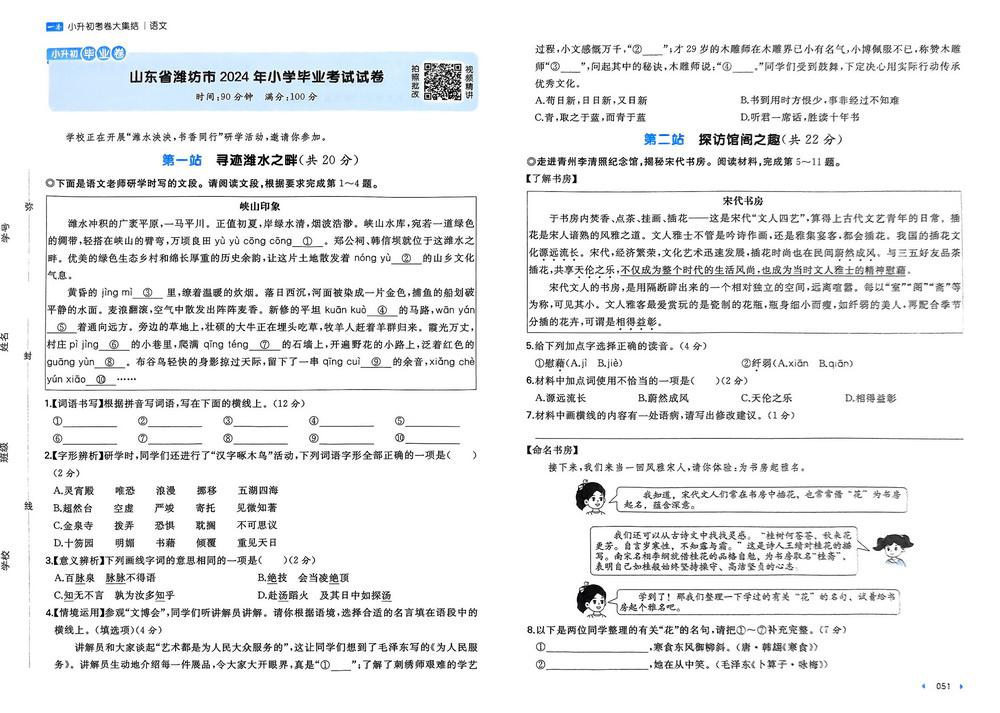 山东省潍坊市 2024 年小学毕业考试语文试卷video