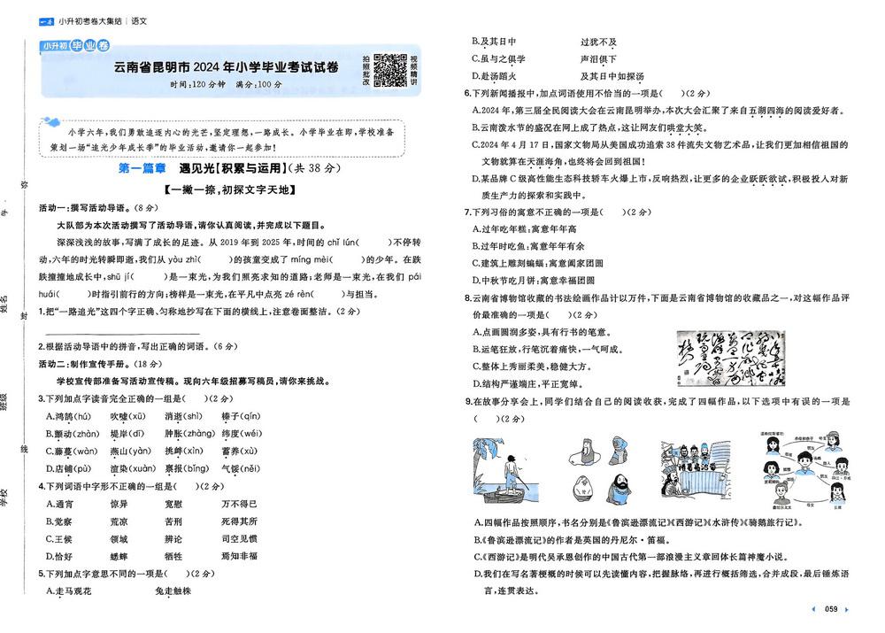 云南省昆明市 2024 年小学毕业考试语文试卷video