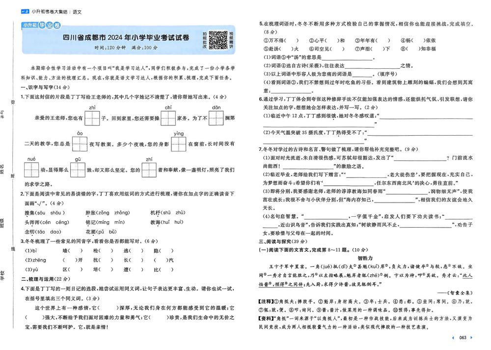 四川省成都市 2024 年小学毕业考试语文试卷video