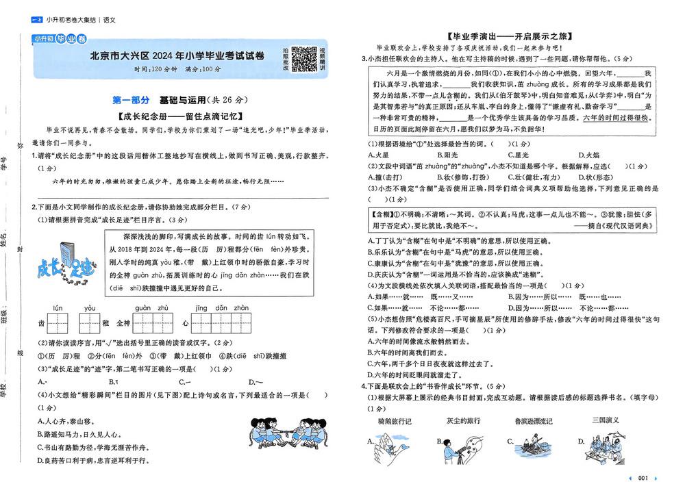 北京市大兴区 2024 年小学毕业考试语文试卷video