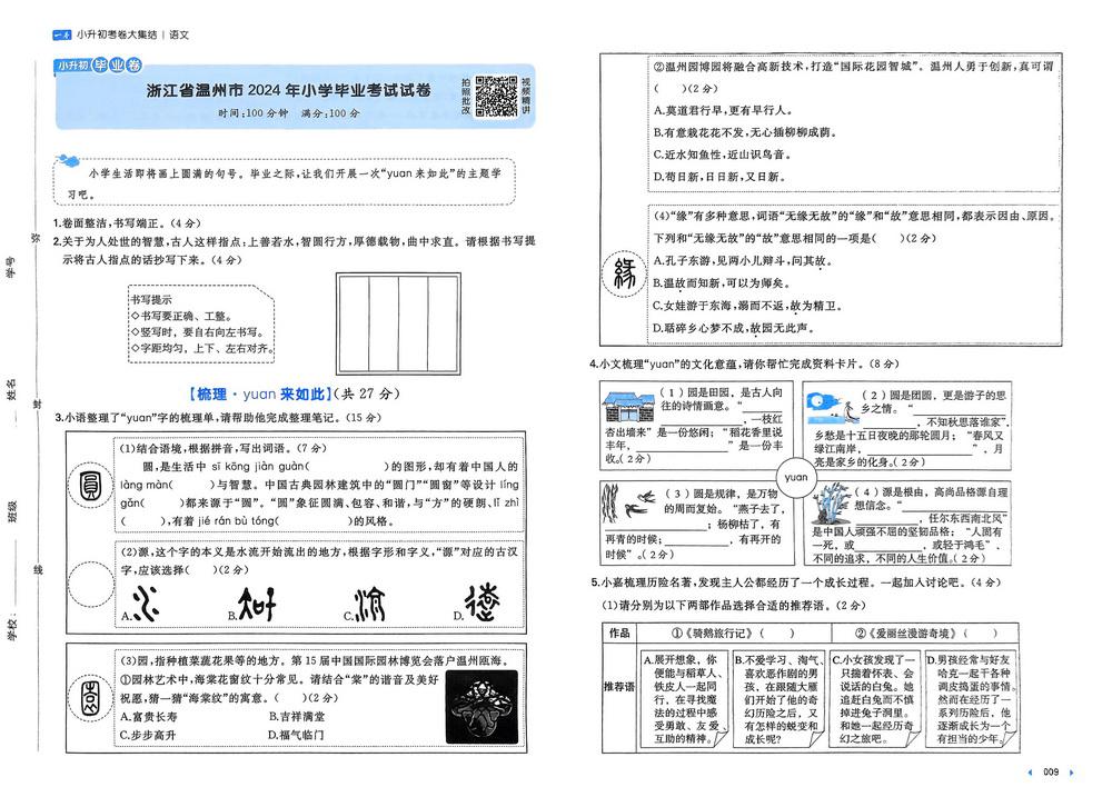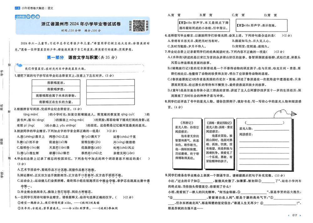 浙江省温州市 2024 年小学毕业考试语文试卷video