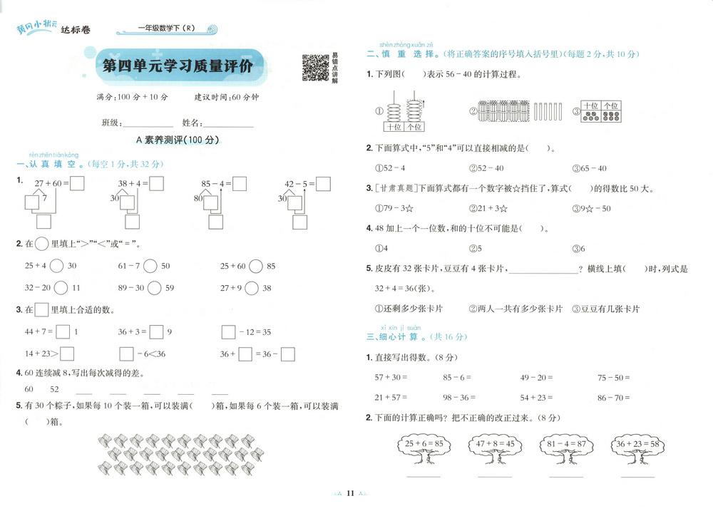 新教材人教版一年级下册数学第四单元测试卷二十四