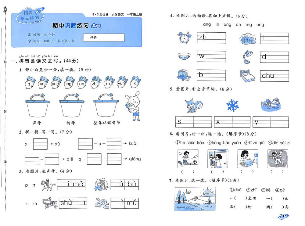新教材人教版一年级上册语文期中测试卷六