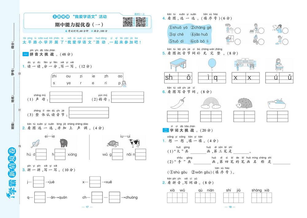 新教材人教版一年级上册语文期中测试卷三十二