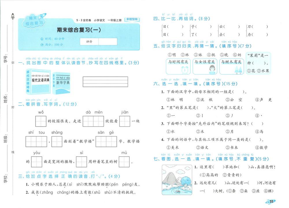 新教材人教版一年级上册语文期末测试卷三十九