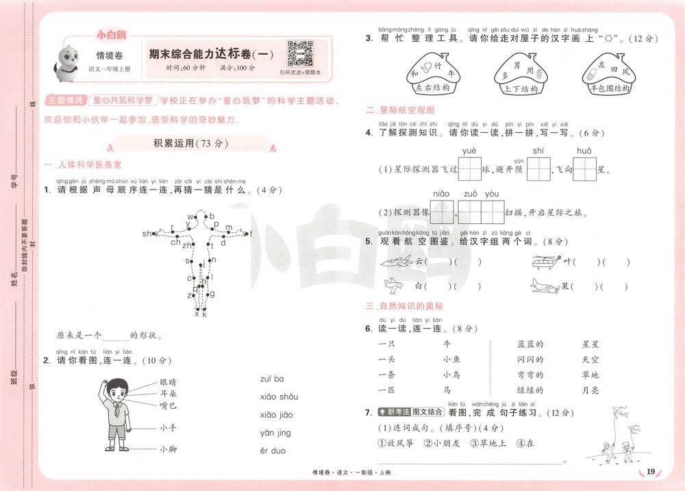 新教材人教版一年级上册语文期末测试卷四十八